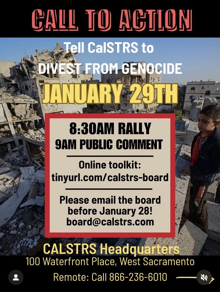 Tell CalSTRS Divest from Genocide 1-29-26